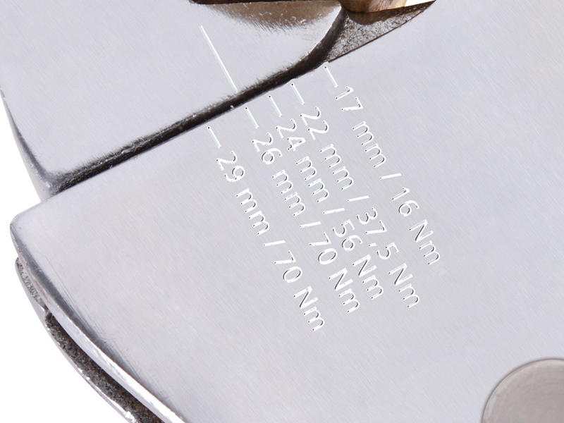 - Момент затяжки нанесен на головке ключа: обеспечивается затягивание гайки в соответствии с нормами